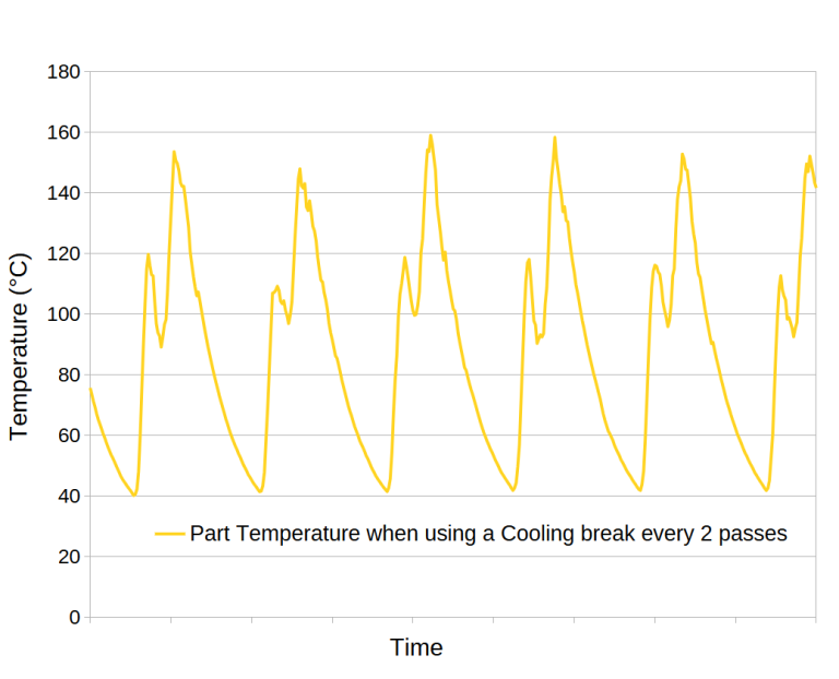 When no cooling is used, if an operator apply all required passes in a single run, the part’s base metal temperature will rise significantly, often reaching several hundreds °C. While another operator who applies the coating in stages (e.g., 5 passes followed by a break, then another 5 passes before another break) will likely keep the part’s temperature significantly lower.